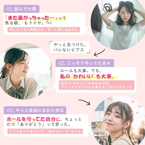 ここでは、用途別に選ばれやすい透明ピアスのタイプを紹介します。特定の商品ではなく、選び方の目安として参考にしてください。