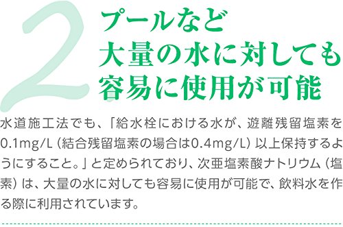 子ども用ビニールプールや家庭用プールに最適。フローティングディスペンサーと併用すると均一に溶けやすく便利です。