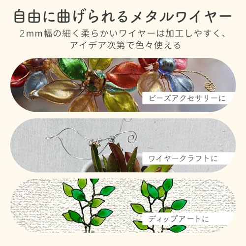 柔らかく曲げ直しが効くアルミ製。小花・ピック類の固定や巻き留めに最適です。