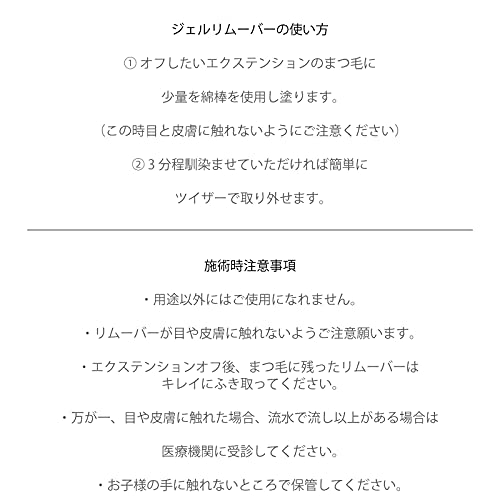 ・オフ手順:ふやかす→コーム/ツイザーでやさしく除去→洗浄→ぬるま湯でしっかりすすぐ。