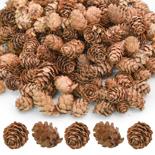自然の松ぼっくりはひとつずつ大きさ・かさの開き方・色味が異なります。通販でも「多少の欠け・割れがあります」と記載されていることが多いため、複数個の中から選びながら使うのが基本です。均一な見た目を求めるなら、人工松ぼっくりも選択肢になります。